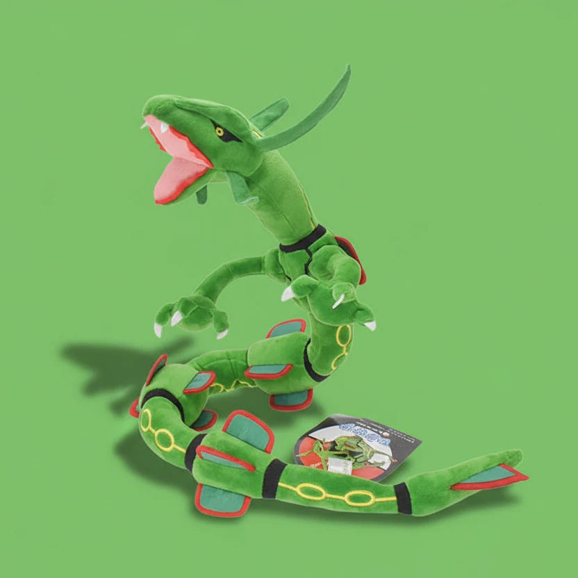 Quazamon brings your favorite legendary sky serpent to life in plush form—reimagined as a bold, poseable collectible that blends display, play, and personality.